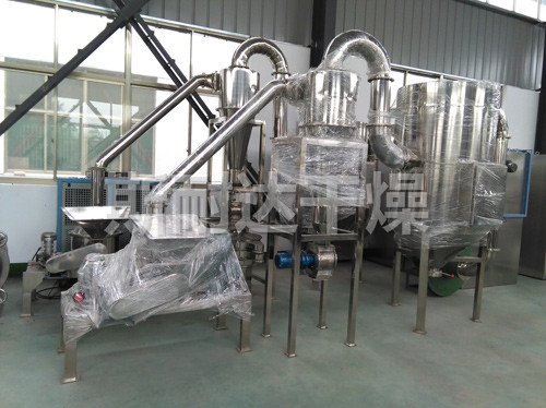 熱空氣由入口管以適宜的噴動速度從干燥機底部進入攪拌粉碎干燥室,對物料產生強烈的剪切、吹浮、旋轉作用,于是物料受到離心、剪切、碰撞、摩…